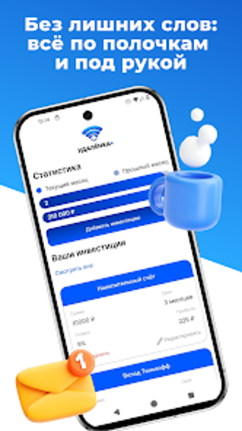Удаленка+ は、個人の投資と預金を効率的に追跡するために設計された無料の Android アプリケーションです。ユーザーは、金額、期間、金利を含む投資の詳細を簡単に追加でき、アプリは期待される利益を迅速に計算し、財務ポートフォリオの包括的な概要を提供します。メイン画面では、投資の概要とともに、現在の月と前の月のパフォーマンスを比較できる統計ブロックが表示され、情報に基づいた財務決定を促進します。